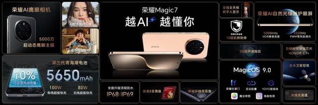 榮耀終端有限公司CEO趙明表示:“AI毫無疑問是現在最引人注目的科技魔法,但榮耀很早就看到了AI讓手機進化的魔力,我們堅信AI是智能手機的未來。從拍照、屏幕、續航到通信,我們用AI魔法使能和重構⼀切,包括操作系統。榮耀Magic7系列將會是引領未來的AI手機。”