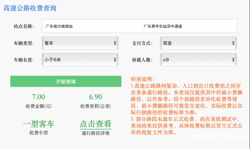 記者查詢省交通運輸廳官網發現,從廣東南沙南南站到翠亨東站深中通道,收費里程6.9公里,一型客車現金收費7元,粵通卡6.65元;到深圳前海站收費里程34.84公里,一型客車現金收費69元,粵通卡65.55元。