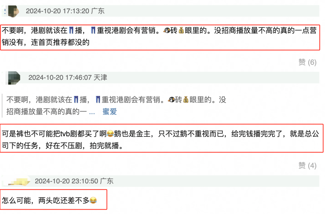 文娛價值官在豆瓣的TVB小組裏看到,網友對優酷和騰訊兩家平台獨播港劇的態度,也存在一定的分歧。