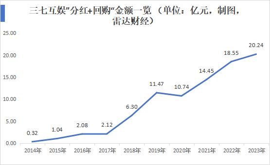 雷達財經計算發現,2014年到2023年,三七互娛“分紅+回購”金額從0.32億元提升至20.24億元,十年間增長超62倍。