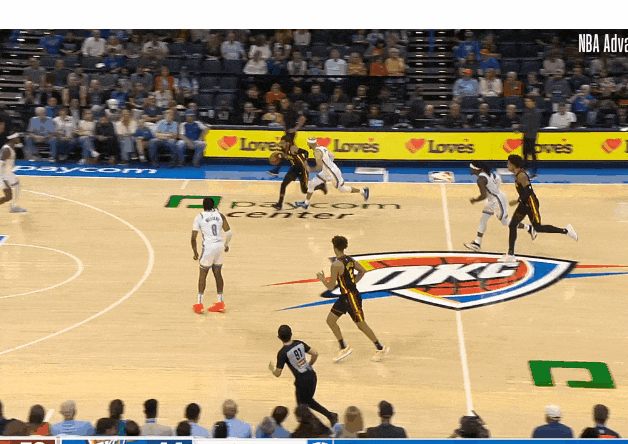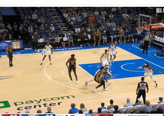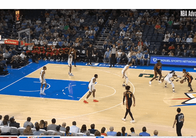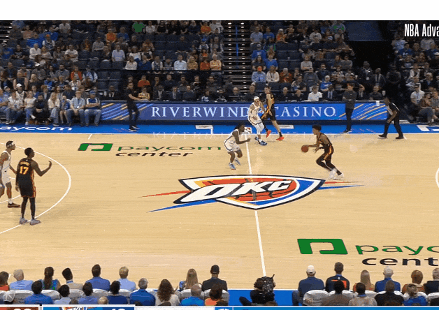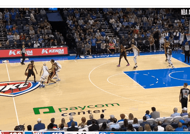 特雷·楊逼出切特換防,想雷霆後門一定空了,給弱側內切!——被弱側聯動斷走。