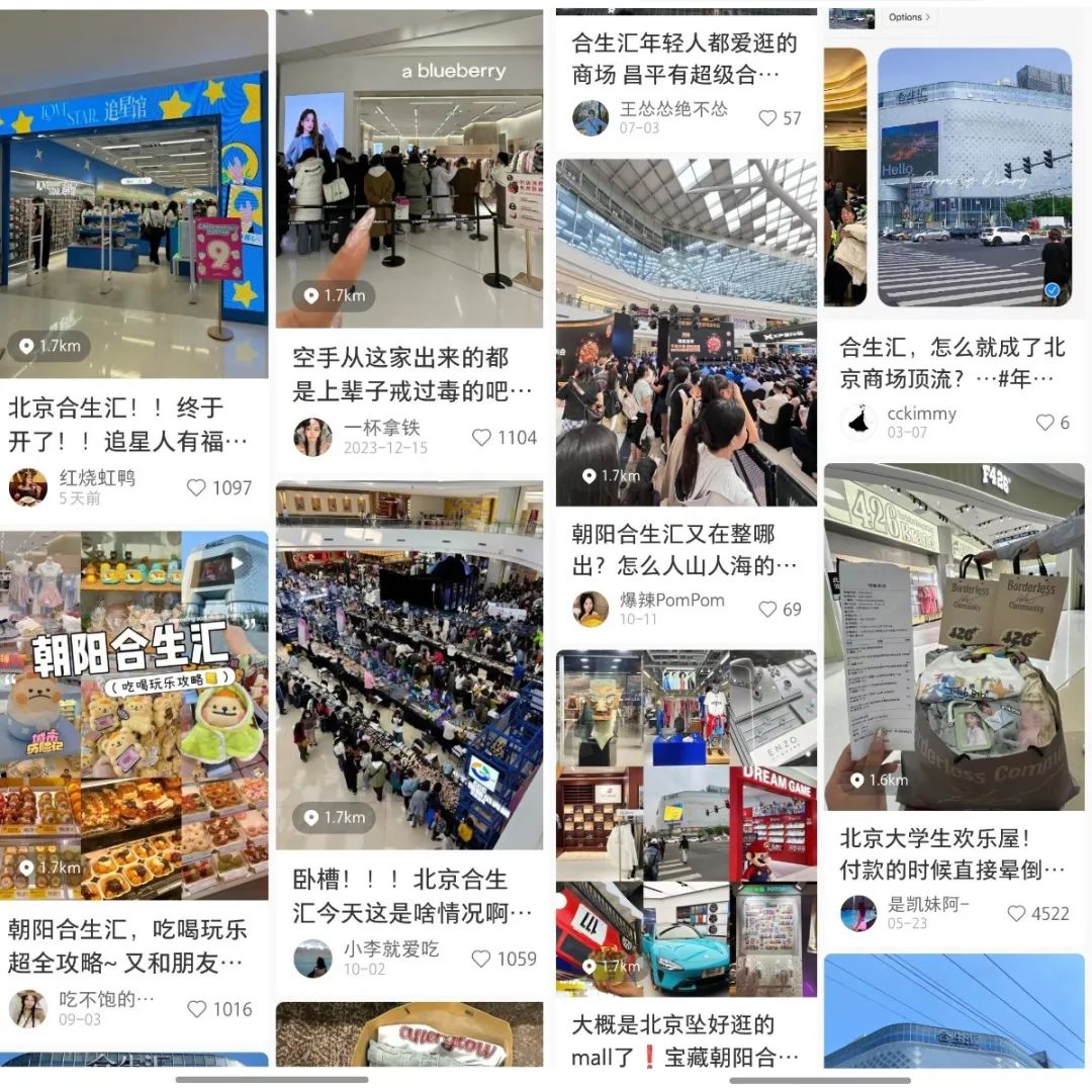 它可能是北京最受Z世代歡迎的商場。介紹朝陽合生匯的小紅書筆記中,年輕人、大學生、00後是高頻出現的詞語。