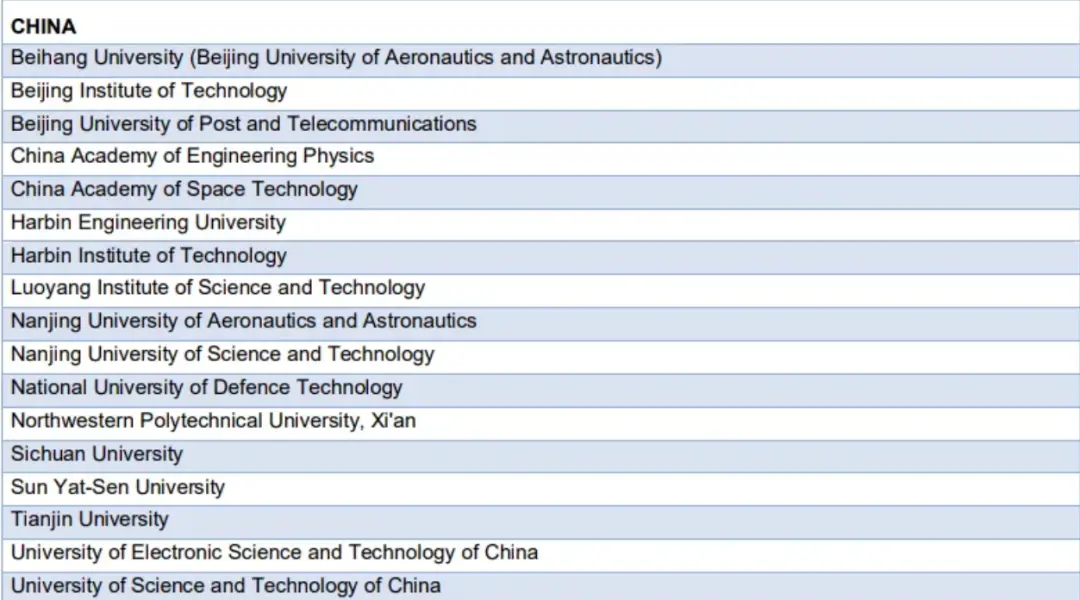 從ETH發佈的名單來看,被列入限制的院校不僅包含“國防七子”,還有985和理工類名校。