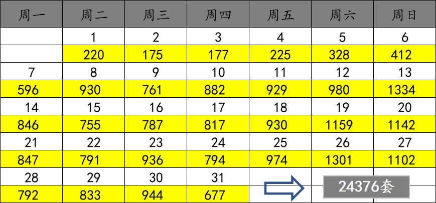 從10月13日開始新政首月的每週六日都單日破千,哪怕是日常工作日也有多日可以做到900套+,跟新政前工作日日均600-700套對比鮮明