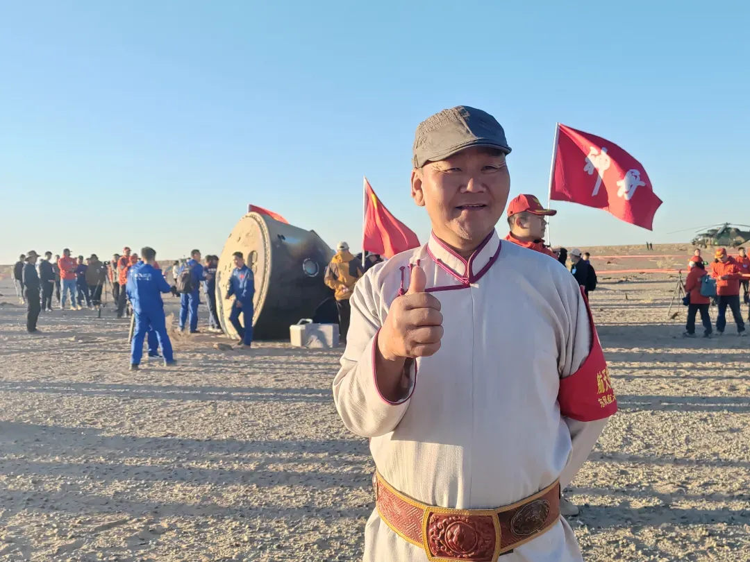54歲的衞其勒格其大叔家的草地已經成為神舟飛船的“母港”,從神舟十二號飛船開始,就已經迎接了6次飛船着陸,只有神舟十三號返回時,因為地面風比較大,降落在他家草場隔壁,距離邊界不到100米的地方。