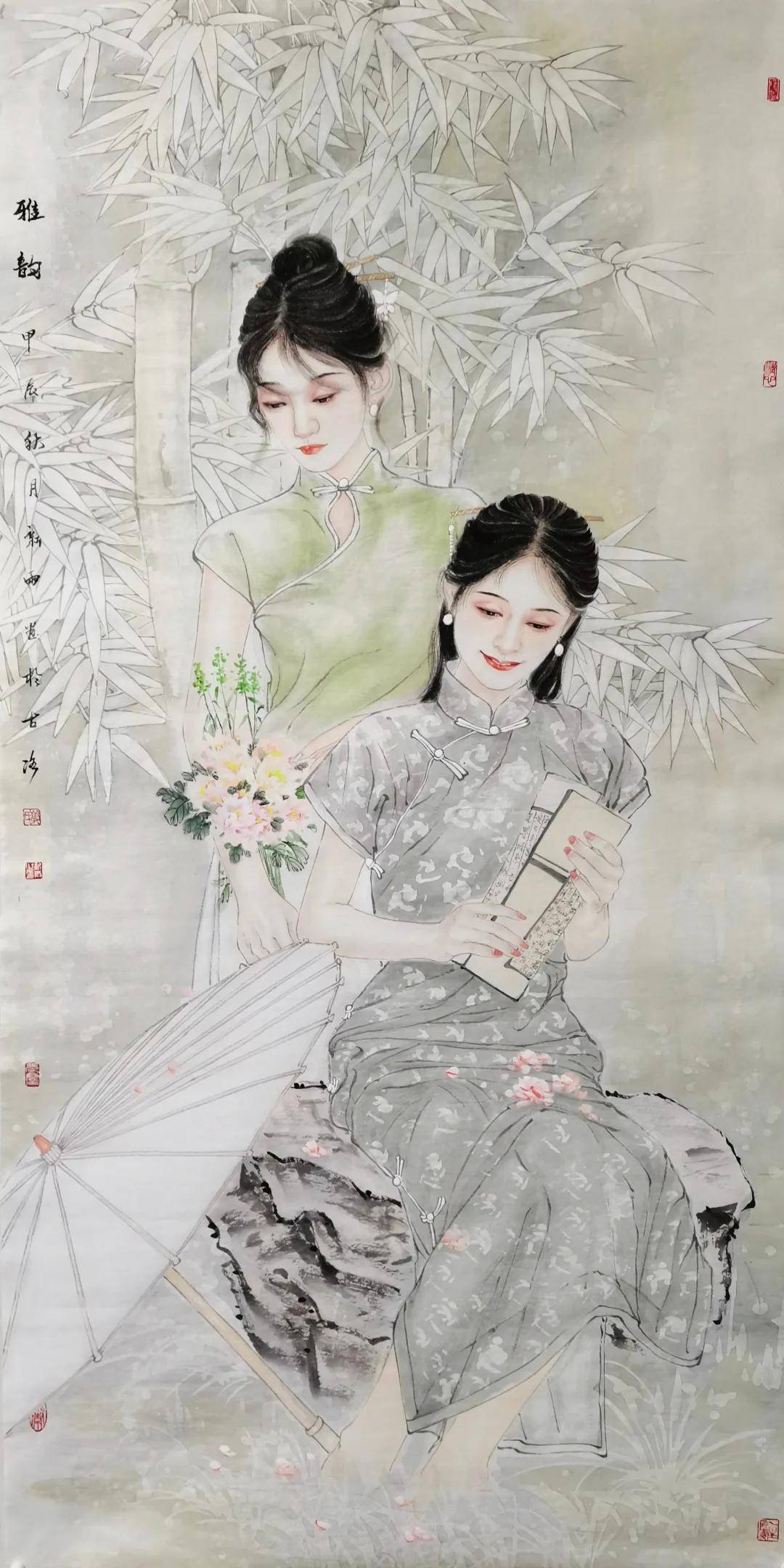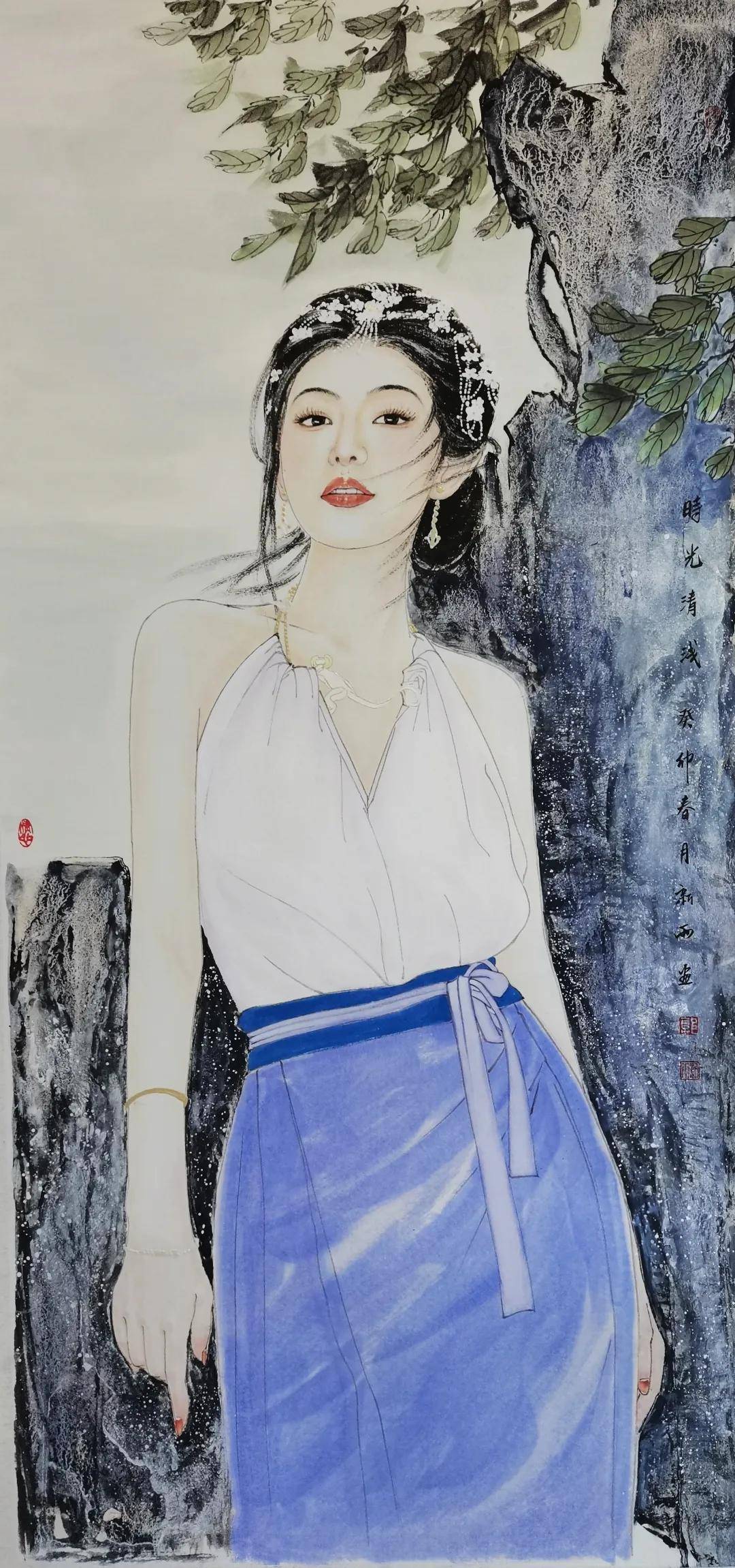 於郭新雨而言,同為女子,她以女性之視角描繪女性,在畫中傾注的情感更能觸動人心。郭新雨曾言,繪製美女圖耗時費力,欲在畫中展現女孩的各種神情且營造 “躍然紙上” 之感,需精雕細琢,實非易事。此類畫作,每售出一幅便少一幅,且創作週期漫長。然顧及藏家喜愛之情,她亦在構思創作帶有場景的大幅美女畫。讓我們一同期待。