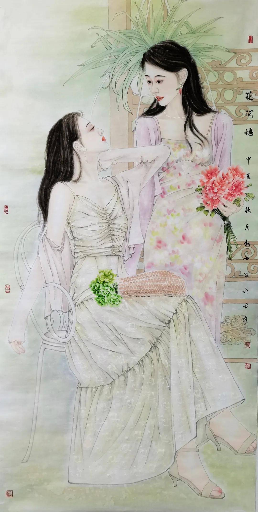 ◎郭新雨美人圖 《花間語》 138cmx68cm 中國畫