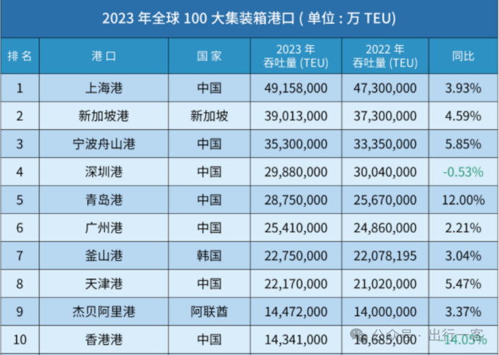 2023年全球貨物吞吐量排名,劉思彤根據公開資料整理