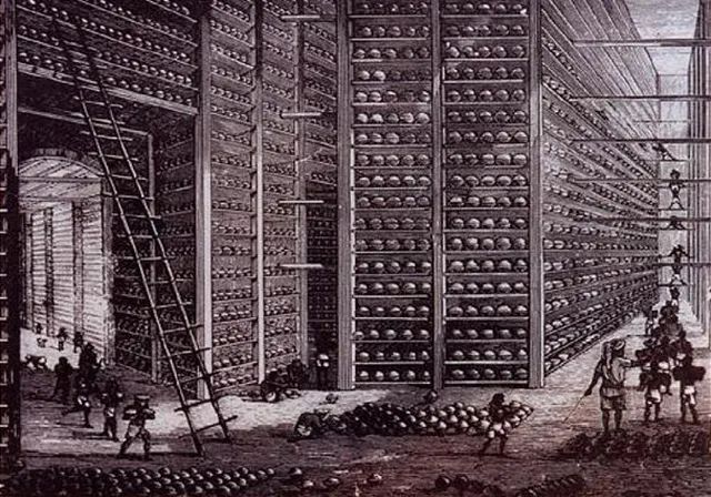 ▲英國東印度公司倉庫裏準備銷往中國的鴉片