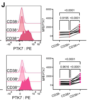 圖注:幼稚T細胞中PTK7和CD38共表達的代表性流式細胞術圖