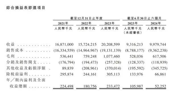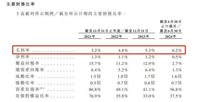 《招股書》顯示,截至2021年-2023年及2024年上半年,公司毛利率分別為3.2%、4.8%、5.3%和6.2%。