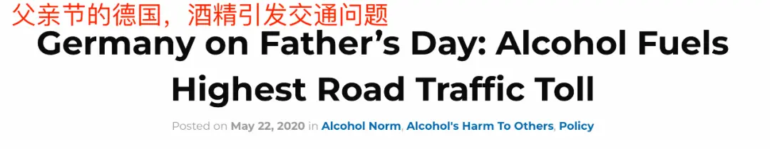 從2004年開始,德國平均每天都會發生98起因為喝酒產生的交通事故,而在父親節當天則會發生263起。