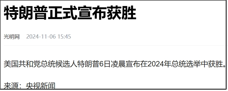特朗普宣佈勝選,共和黨拿下參議院,特朗普有望三權合一,民主黨慘敗_風聞