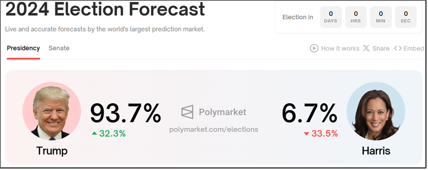 受此影響,押注網站上,特朗普勝率也是出現一波飆升。