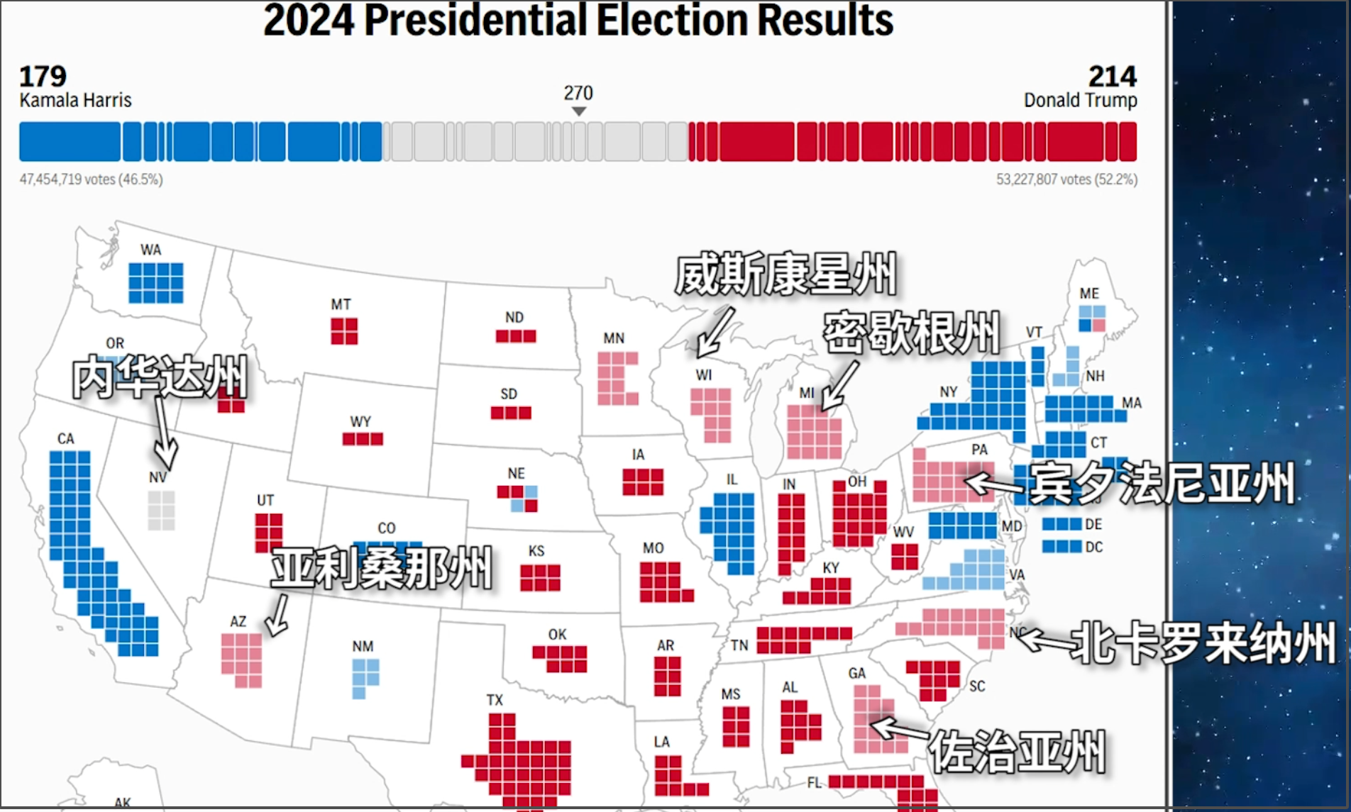確定出的結果,特朗普有247票了。