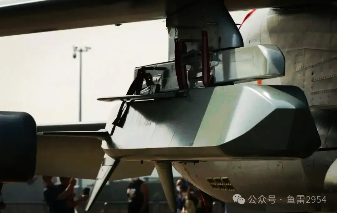 上屆航展上大出風頭的AKF-98A隱形巡航導彈再度亮相——它採用內部容積很大的圓角倒梯形截面彈體,頭部是多面體平面的低阻力隱身設計,背部有兩個摺疊彈翼提供升力,被稱為是中國版“風暴陰影”隱形巡航導彈,整體能力與美國當前最新的JASSM系列隱形空射巡航導彈相當。