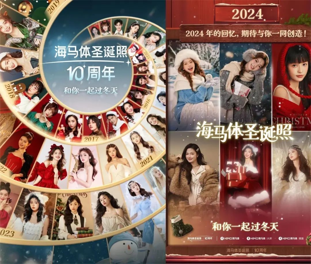 聖誕照與新年照,是海馬體兩大標誌性產品,也是海馬體寫真業務中最重要的兩款產品。聖誕照無論在聲量還是銷量上,都不亞於新年照,對於許多年輕顧客來説甚至更勝一籌。