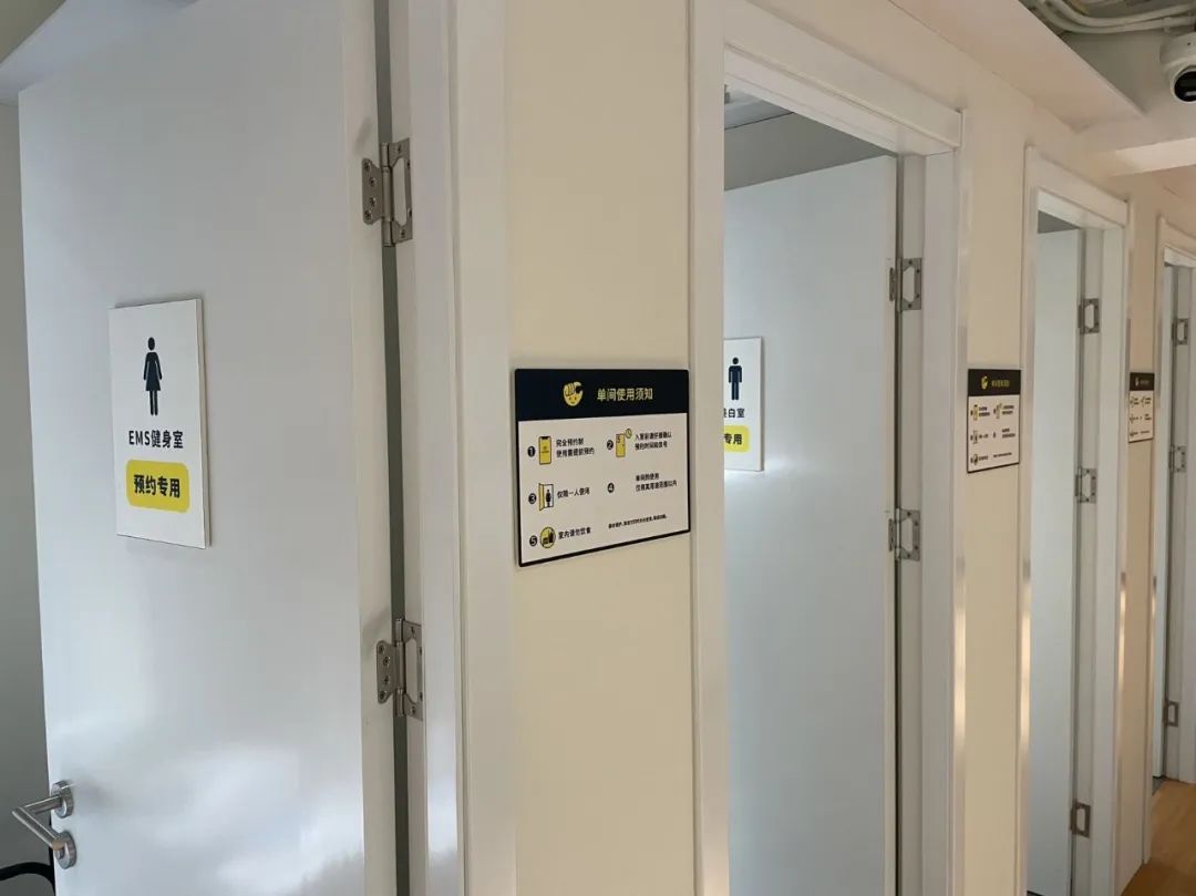 一個個獨立的隔間裏配備了各種「不務正業」的機器,有EMS健身器、美甲儀、紅藍光燈等,但不必期待笑臉相迎的服務人員,牆上貼有具體的操作使用方法,會員需要通過app預約使用。