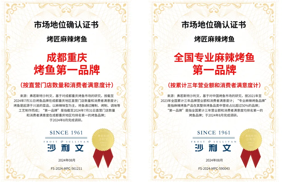 據瞭解,今年烤匠還獲得了沙利文認證的“成都重慶烤魚第一品牌”及“全國專業麻辣烤魚第一品牌”兩項權威認證。