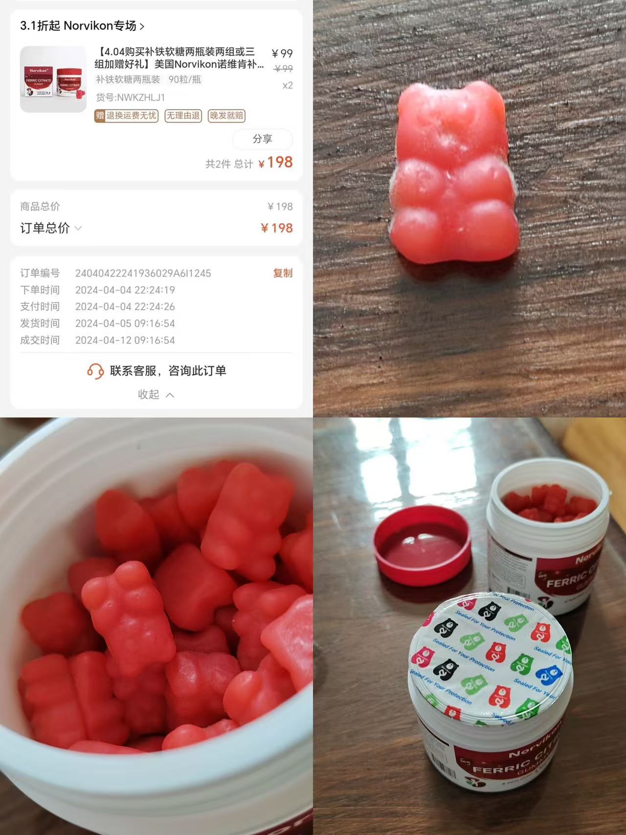 10月28日,廣東省鄒女士向“電訴寶”投訴稱其於2024年4月4日在蜂享家網絡平台購買了一款諾維肯補貼軟糖,價格198元4瓶,已經吃完2瓶了,還剩2瓶沒吃。