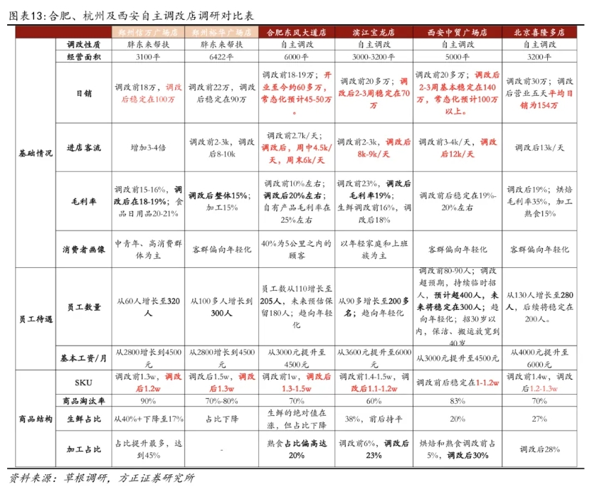 根據永輝超市10月30日晚披露的三季報,截至本報告披露日,公司在同行幫扶下,調改門店均獲得了業績環比的提升。這也讓永輝超市堅定了胖東來模式系統性的轉型工作。也因此,永輝自己正在加快腳步。進一步擴大調改範圍,預計到春節前,全國調改門店數量將達到約40-50家。