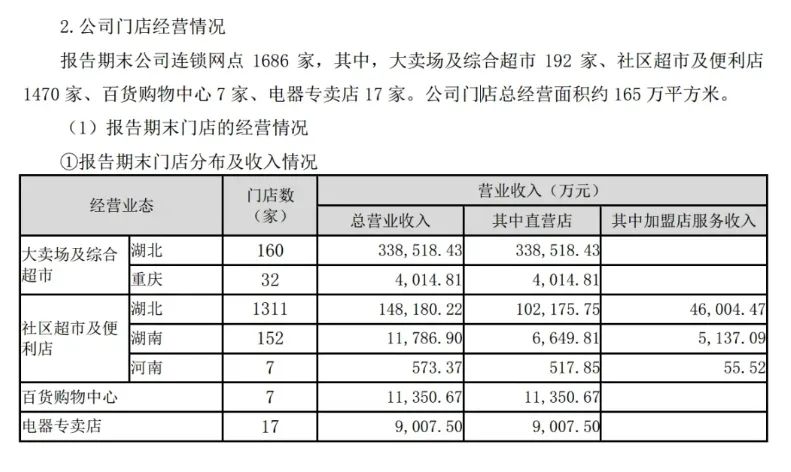 截至上半年末,中百集團公司連鎖網點1686家,其中,大賣場及綜合超市192家、社區超市及便利店1470家、百貨購物中心7家、電器專賣店17家。