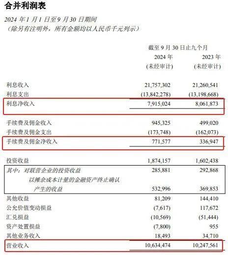 2024年前三季度,重慶銀行利息淨收入實現79.15億元,同比減少1.82%;手續費及佣金淨收入7.72億元,同比增長128.99%。投資收益18.74億元,同比上漲16.98%。