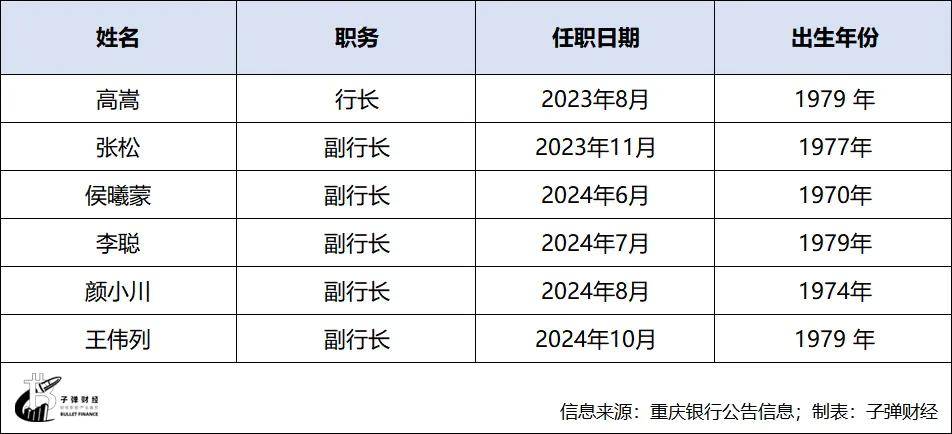 自2023年以來,重慶銀行高層管理團隊大調整,多位高管離任、“一、二把手”均有更替。經過一系列高層調整,當下這家兩地上市城商行的高管陣容年輕化趨勢明顯。