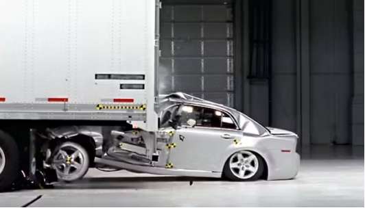 最近車圈最大的新聞,毫無疑問是知名媒體懂車帝搞的碰撞測試,他們拿了30輛不同級別、不同價格的市售新車,模擬追尾重型卡車的場景,**時速為56 km/h,30%重疊碰撞。**結果堪稱慘不忍睹,大部分測試車直接被砍掉了半邊頭,頂部被掀開,秒變敞篷車,而坐在副駕位置的假人,不能説受創嚴重吧,只能説是毫無生還可能。