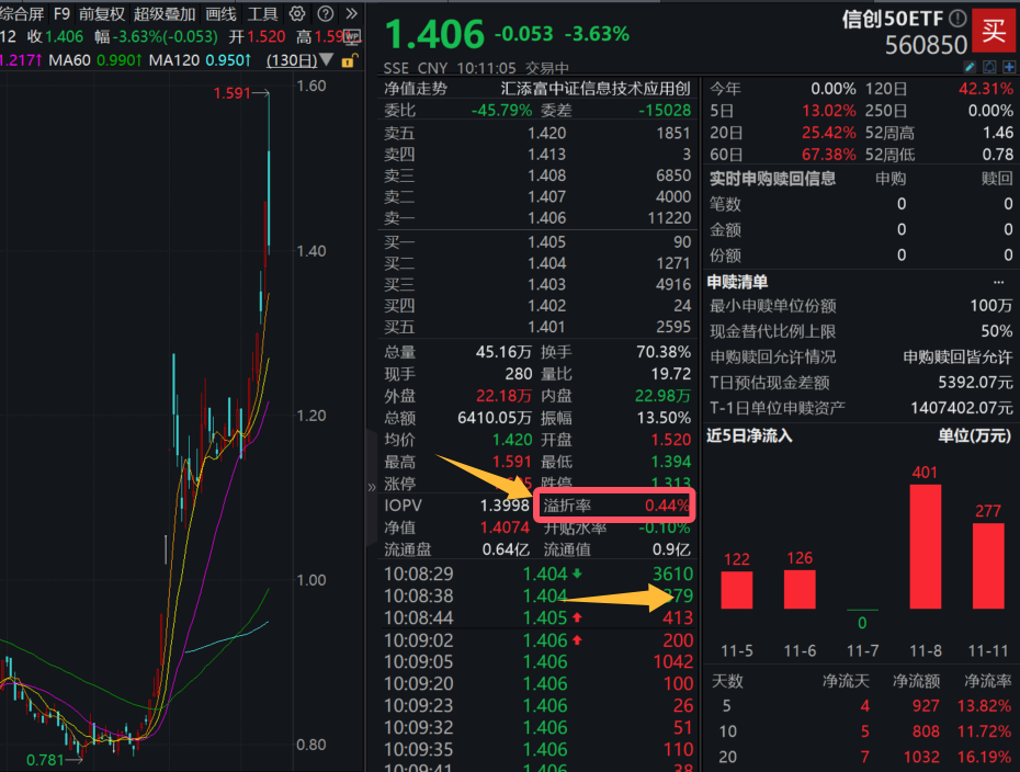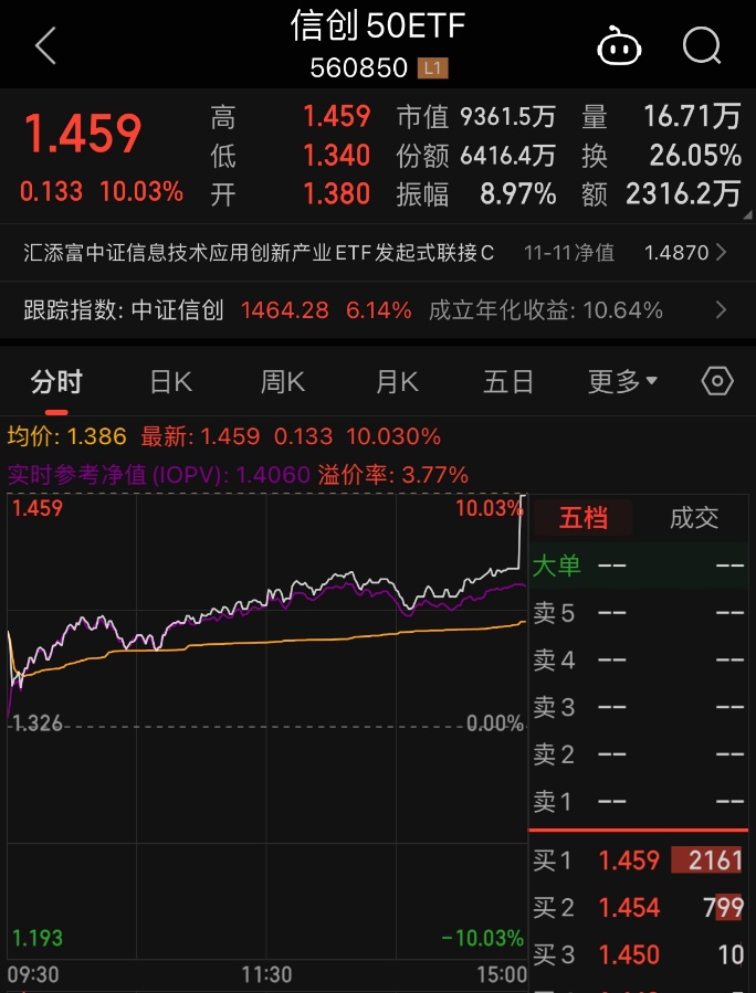 信創50ETF昨日尾盤漲停,今日開盤迴調,溢價迅速走闊_風聞