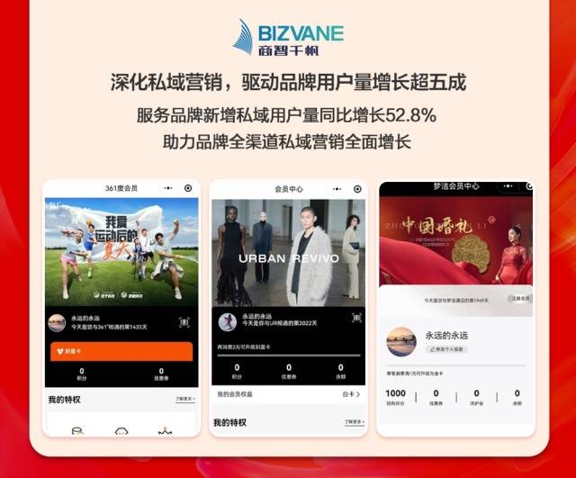 商智千帆作為專注提供SaaS系統及運營的服務商,通過“工具+內容+運營”三重手段,幫助品牌打造一站式私域營銷解決方案,全方位助力品牌和用户建立更緊密的關係。本次大促期間,商智千帆服務品牌提升新增私域用户量同比增長52.8%,助力品牌全渠道私域營銷全面增長。