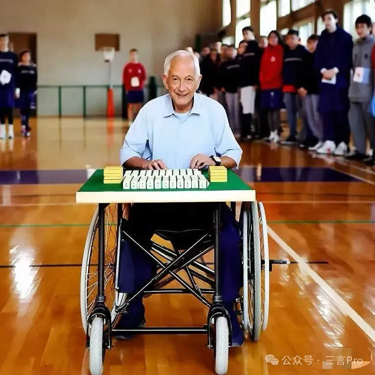 大模型C的結果只能説“輪椅”是正確的,人物形象和麻將牌擺放方法都不準確。