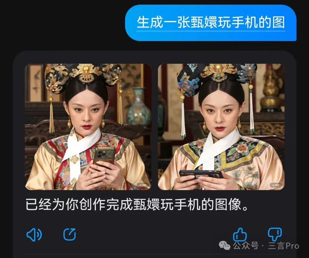 大模型B的甄嬛也同樣存在手指細節錯誤,同時手機也有些“一眼假”。