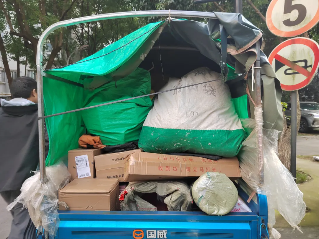 大大小小的包裹擠滿了小蔡的三輪車,車上的紅色帆布袋格外顯眼,因為那裏裝的都是“上門件”。