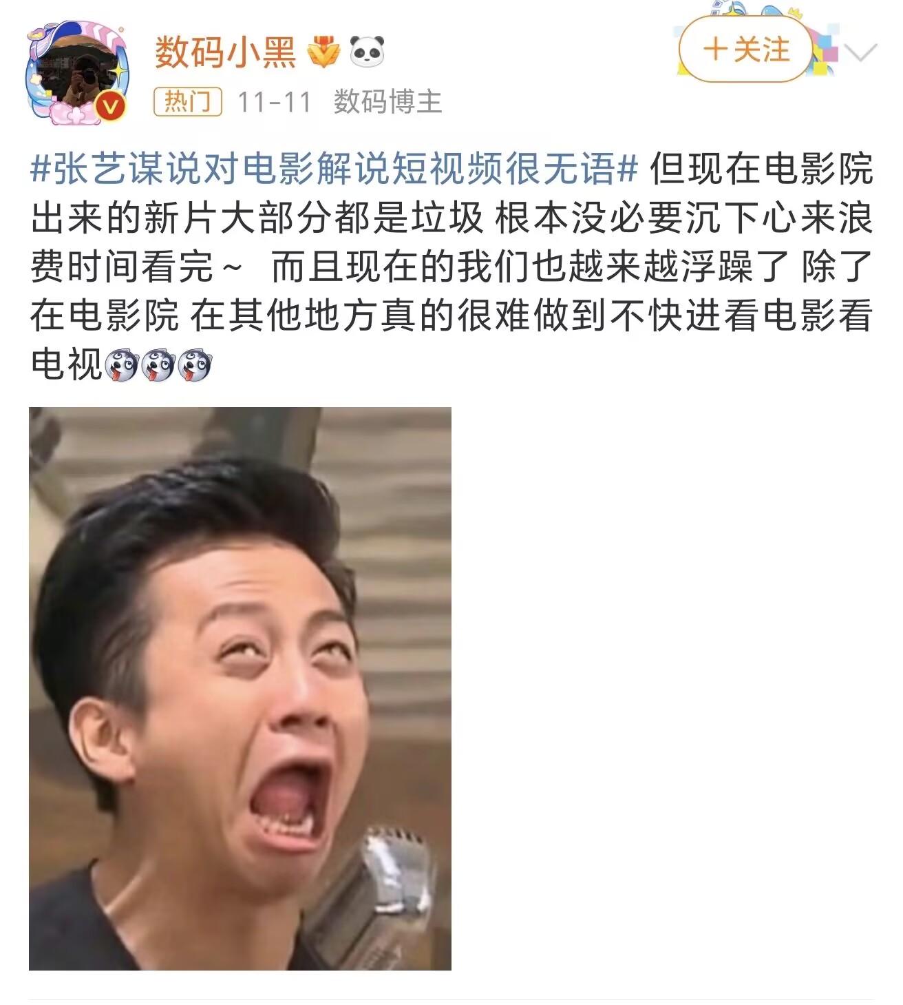 他還表示,身為一個電影導演,看到這種電影解説短視頻就感到很難過。