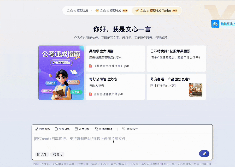 自由畫布的自由、靈活、高效,源於文心大模型的持續進化。從創作自由度來看,文心大模型的跨模態能力,能夠支撐不同領域、不同模態的內容生成,在提升效率的同時,也為用户提供了更好的使用體驗。