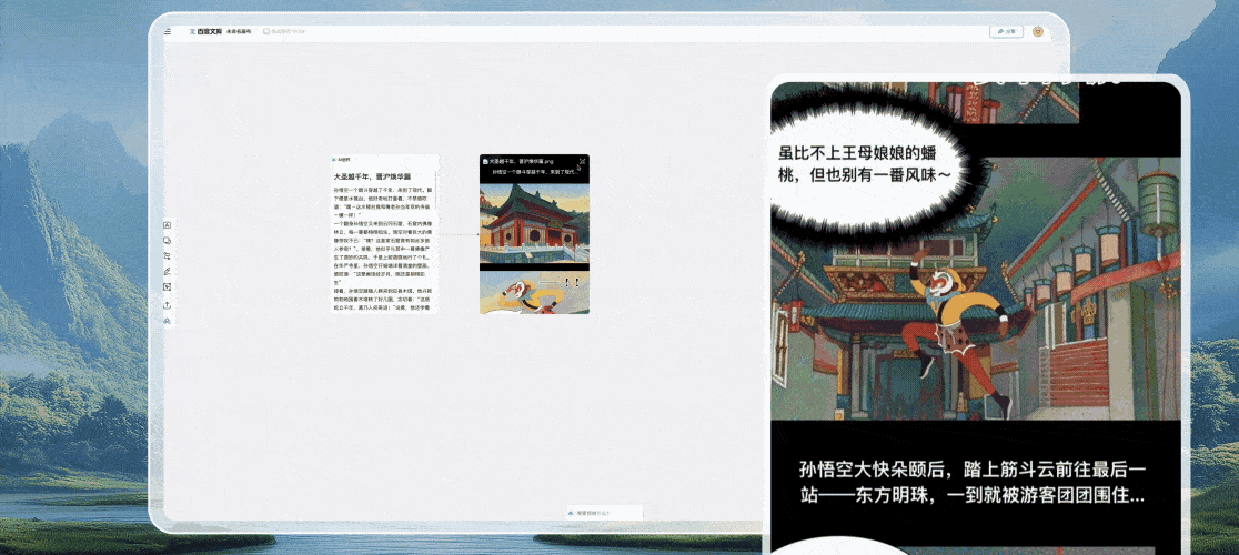 從用户體驗角度,自由畫布重塑了內容創作的底層邏輯。AI生成對文字、圖片、音視頻內容的影響,往往體現在內容製作中一個個小的環節中,但自由畫布不僅容納了所有可以提升效率、激發創意的生產環節,還顛覆了內容創作的線性邏輯,讓內容的輸入、編輯和修改都變得更自由。