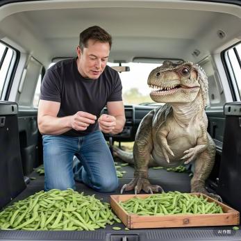 例如,用户在體驗文章的封面圖製作時,可能會在文心一言的輸入框中寫下以下需求:幫我畫一張馬斯克和一隻迅猛龍在後備箱裏剝豆角。