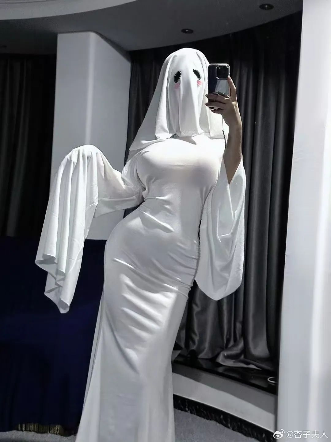 **幽靈娘,其實早就是個萬聖節擦邊利器了,基本上每年都可以看到有人這麼做,只是很少這般出圈。**這基本上算個萬聖節的保留節目,就像每年聖誕節,都會有人穿成聖誕老人的萌妹小助手,拍一些拆 禮 物小視頻。