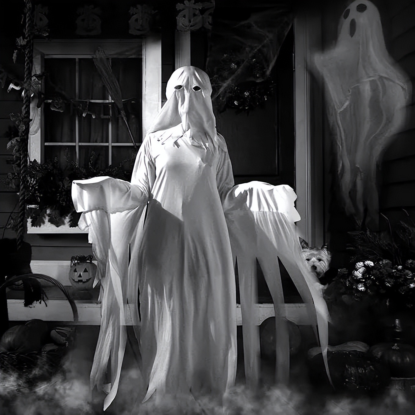 很長一段時間裏,幽靈的形象都和白布無關,所以古典文學裏的幽靈形象都是人形、骷髏,或附身在盔甲上,直至今天都很難在嚴肅的鬼魂裏看到白布造型。