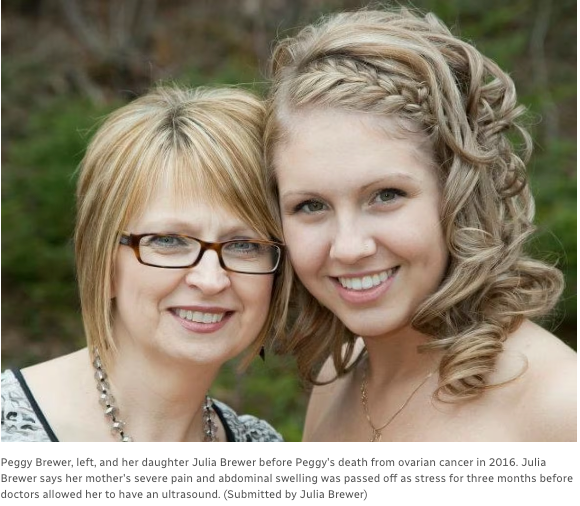 Julia Brewer是一名前急救人員,她説斯賓塞的故事讓她感到既熟悉又恐怖。她的母親佩吉·布魯爾(Peggy Brewer)在2015年被確診卵巢癌前,三個月內急診室醫生不斷告訴她,她只是因壓力導致的。