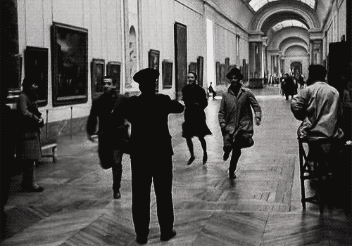 三人行,衝擊盧浮宮,得意地把警衞甩在身後。