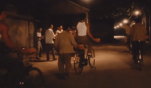 大院子弟騎着在黑夜裏也亮得發光的單車。