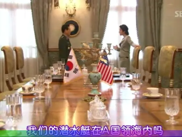 鏡頭再一轉,又把焦點給回到了徐慧琳,不過這回這姐們就不是在華盛頓了,而是一眨眼就跑到了北京來——是的,雖然《大物》沒有在劇中點明韓軍潛艇擱淺的那片海域到底是水域哪個國家的,只用了“A國”這樣模糊的稱謂來指代,但其實後續的劇情發展完全就把這層窗户紙給捅破了——A國就是東大,因為世界上再也沒有第二個國家會用五星紅旗來當國旗的了。