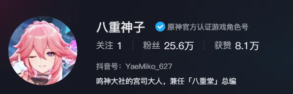 也因此,一直到11.13日,“八重神子”以個人賬號的形式出現在抖音後,遊戲矩陣才開始確信,《原神》這次“循音八重”的聯動,不説後續還會產生的影響,但至少在“遊戲角色打破次元”這個聯動方向上,我無疑是又可以看到一場新的理解秀了。