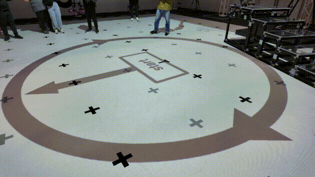 這也是目前全亞洲可用空間最大的遊戲動捕攝影棚。立柱和橫樑上安裝了多達168台攝影機。5米的層高,一方面容許了動捕演員利用威亞,實現跨越更大高度差的表演,同時也讓Cygames得以實現一套特別的輔助系統——通過攝影棚頂部的投影儀,向整塊地面投影站位點、動線乃至遊戲場景等信息,自然是比傳統由人工鋪設的標誌物更加形象、便捷。