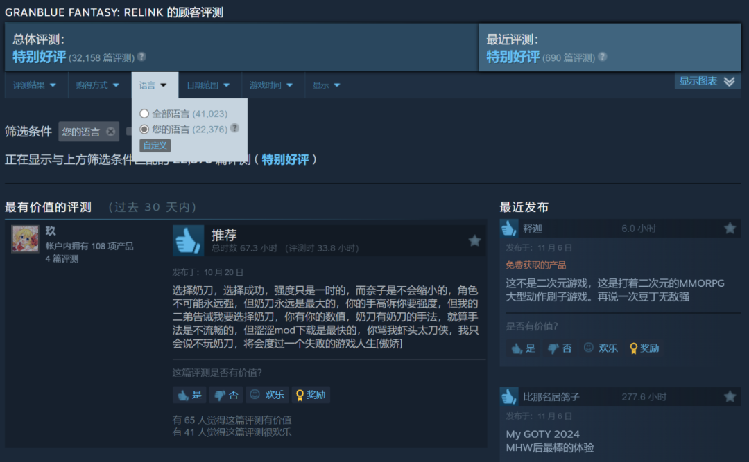 在Steam上,也能看到遊戲獲得了3萬多評價,並保持着“特別好評”。其中超過半數是簡中評論。