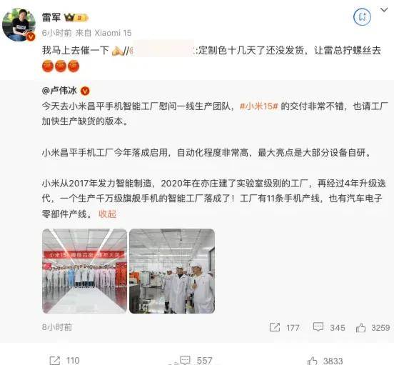 沒成想,這個調侃的話,被雷軍親自翻牌並轉發評論該微博,直接回復「我馬上去催一下」。