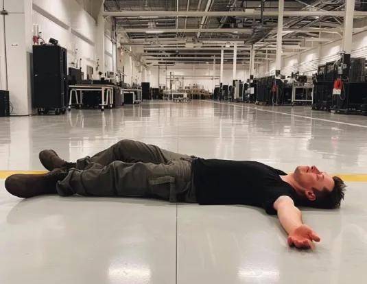 當然,除了接受採訪時,表示自己在車間睡過,網上還有馬斯克躺在地板上睡覺的照片,但也有人表示,這張照片是AI合成的。