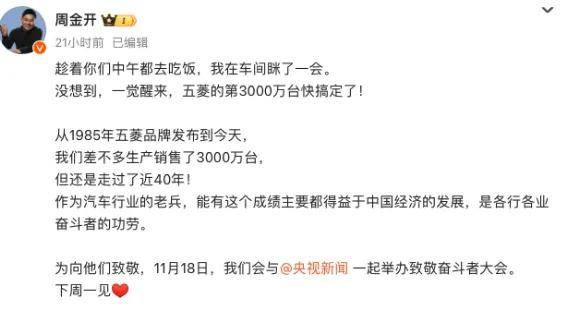 「趁着你們中午都去吃飯,我在車間眯了一會,沒想到,一覺醒來,五菱的第3000萬台快搞定了。」